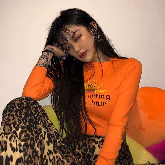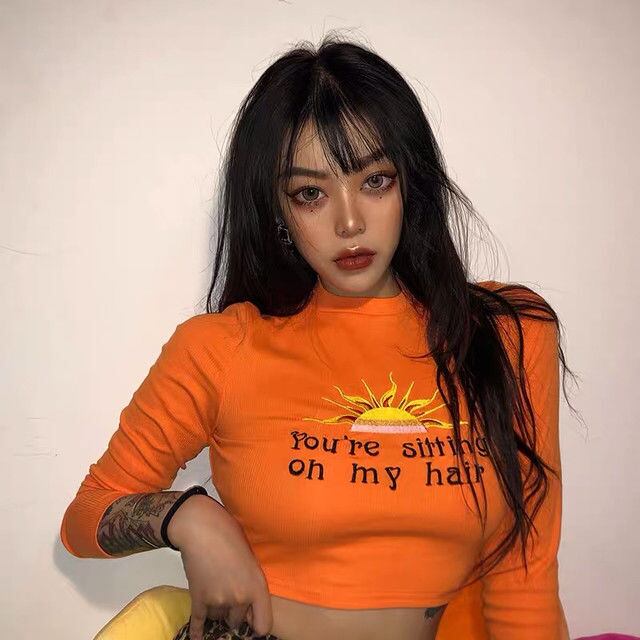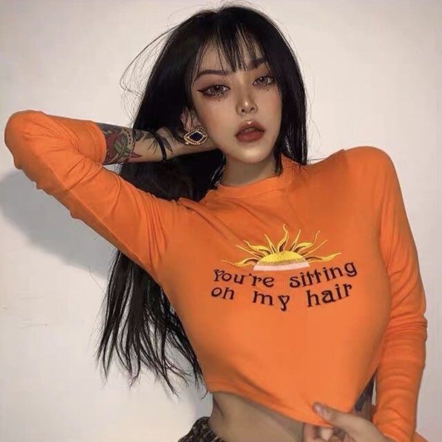 You’re sitting on my hair 刺繍 ロングスリーブ トップス クロップトップ セクシー パーティー クラブ ダンサー 衣装 フェス サイバーパンク 原宿