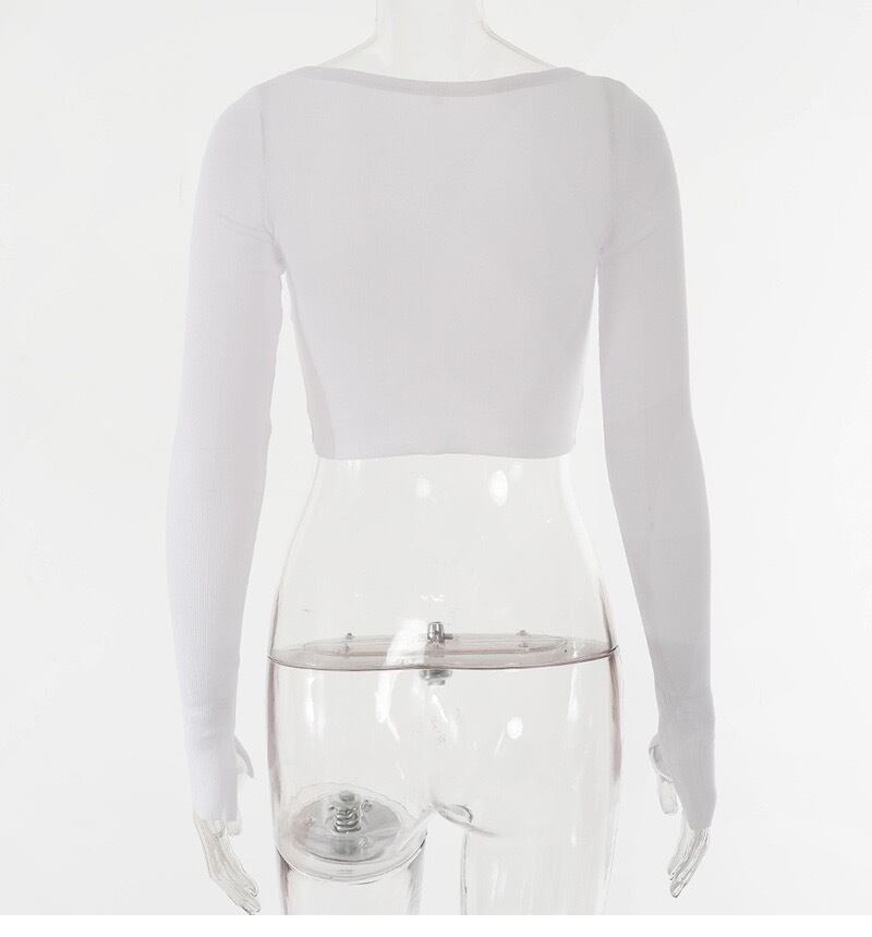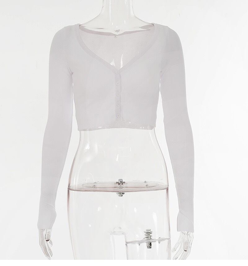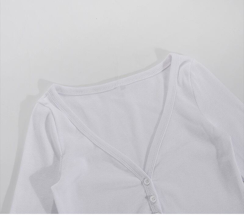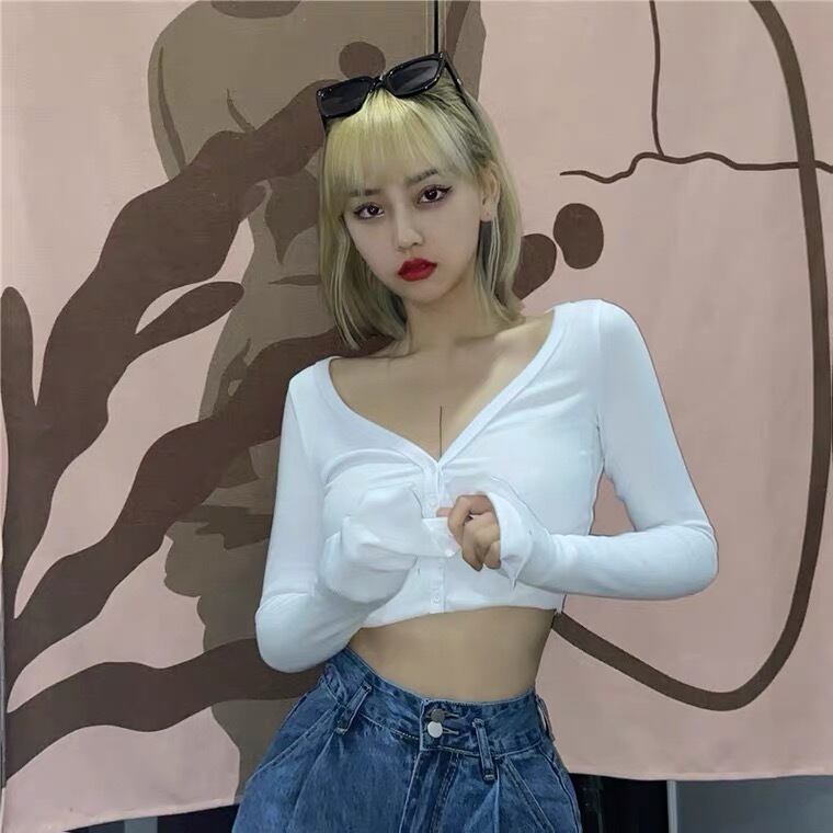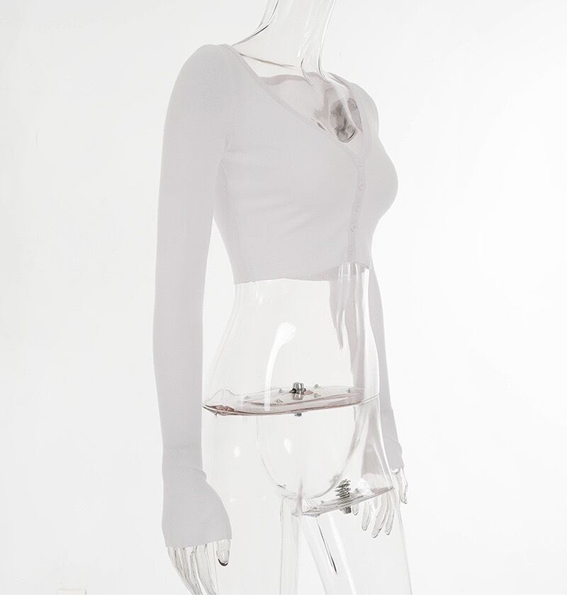 ボタンダウン クロップトップ セクシー ロングスリーブ リブニット スタイリッシュ ストリート 送料無料 プチプラ 海外 インポート カジュアル 海外セレブ風 レディースファッション パーティー クラブ フェス ダンサー 衣装